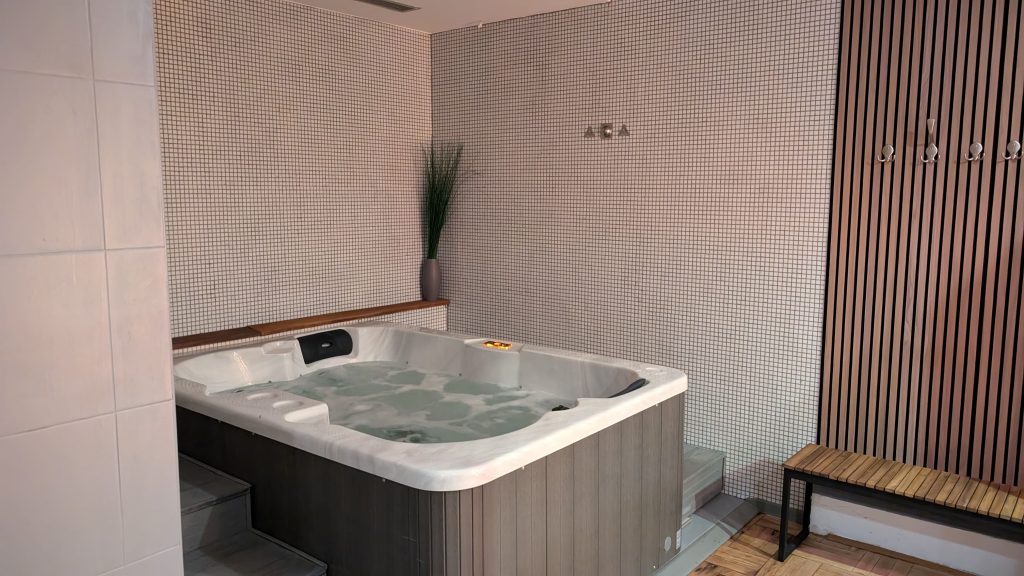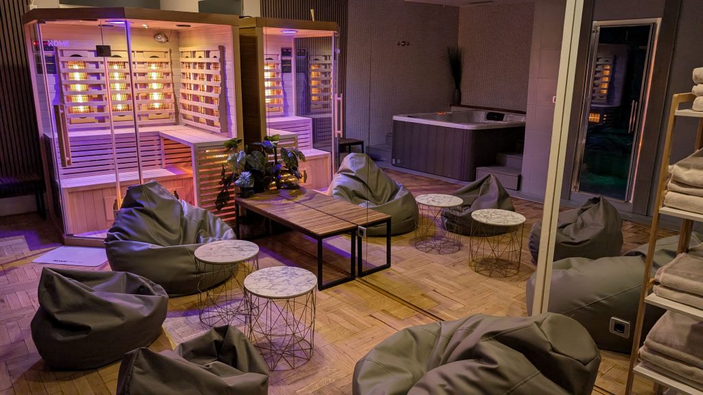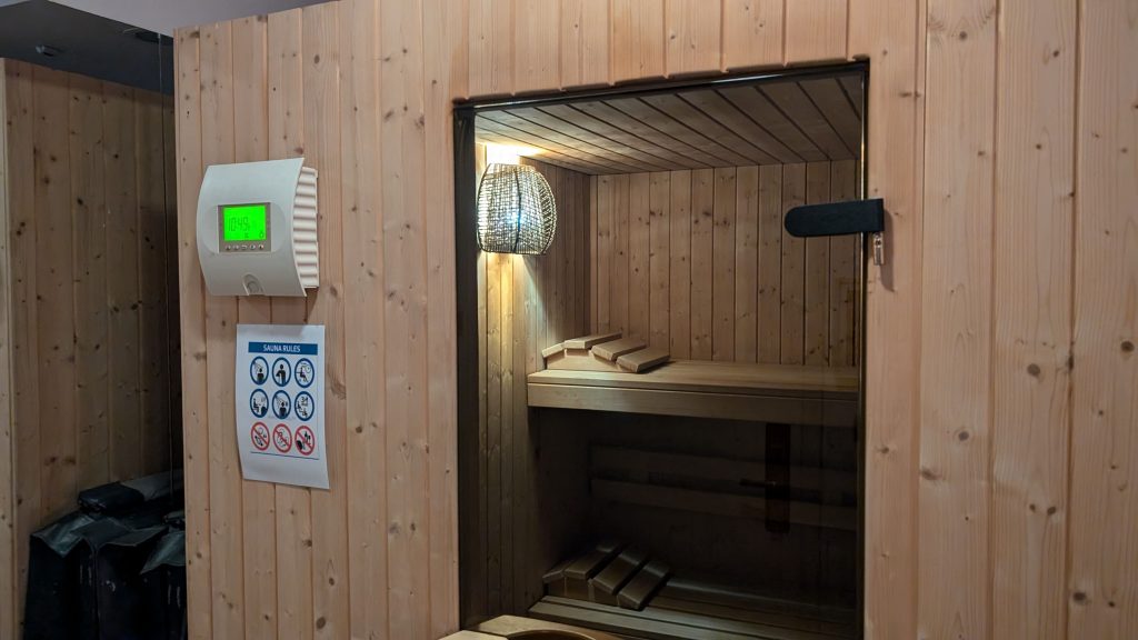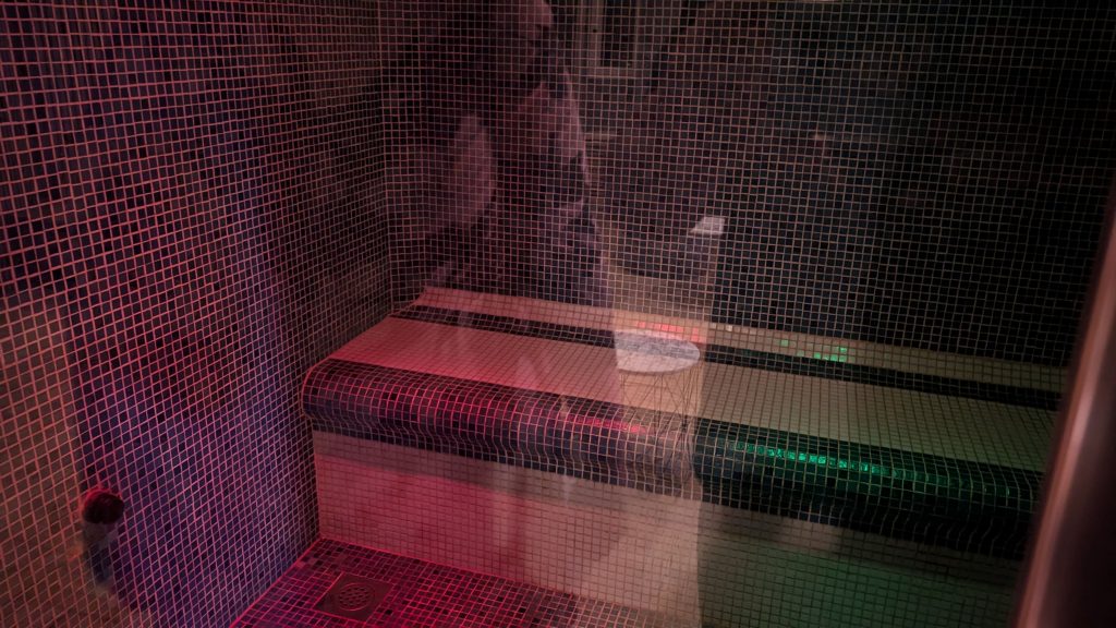 Zudem ist der Wellnessbereich ist mit zwei Saunen, einem Whirlpool, einem Dampfbad, zwei großen Wellness-Duschen, frischen Handtüchern und Sitzsäcken ausgestattet. Allerdings war eine Tür der beiden Saunen nicht dicht und erreichte nicht ansatzweise die gewünschte Temperatur. Der Wellnessbereich war bei unserem Aufenthalt nie überfüllt – zu unserer Zeit von fast 2 Stunden waren nie mehr als vier Personen gleichzeitig anwesend – einschließlich uns. Ein kleiner Nachteil war allerdings, dass der Zugang zum Wellnessbereich nicht über die Zimmerkarte möglich war. Stattdessen musste das Personal jedes Mal die Tür öffnen, wenn diese versehentlich ins Schloss fiel. Vor dem Wellnessbereich befanden sich auf dem Flur Umkleide- und Duschmöglichkeiten.