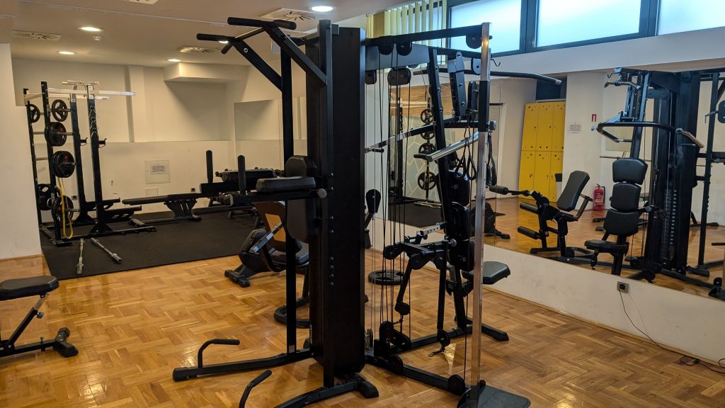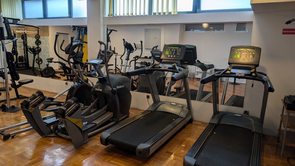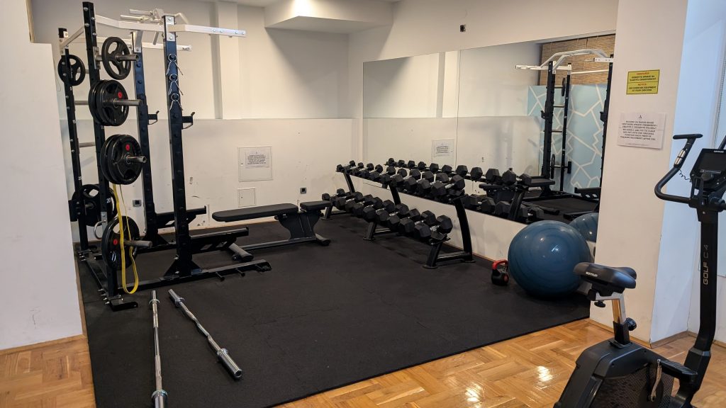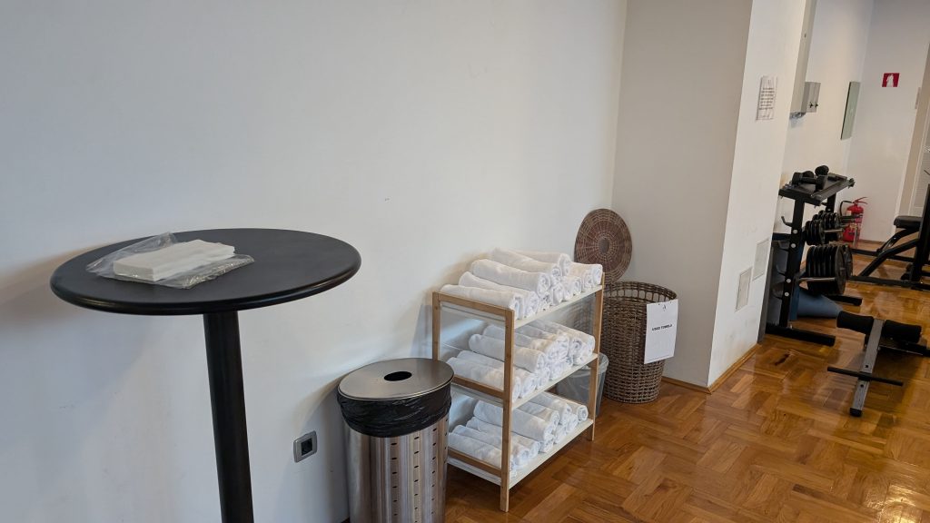 Zudem bot er Fitnessbereich einige Kardio- und Kraftsportgeräte, ergänzt durch frische Handtücher und einen Wasserspender. Für ein kurzes Workout war die Ausstattung ausreichend.