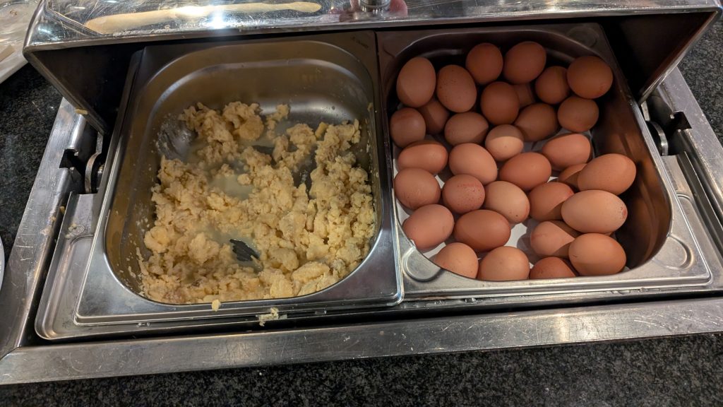Das Frühstück im Mercure Hotel Duisburg City war insgesamt in Ordnung und bot eine gute Auswahl. Alle Speisen waren vollständig beschriftet. Gänzlich gefehlt hat es allerdings an frischen Zubereitungen wie Eierspeisen – es gab nur gekochte Eier und Rührei. Der Service war schnell und effizient – Tische wurden zügig abgeräumt und das Buffet regelmäßig aufgefüllt. Die Kaffeemaschine machte schnell Kaffee, der aber kein Highlight war. Ein großer Minuspunkt war jedoch der Bacon. Sehr trocken und krümelig – besser wäre es gewesen, diesen gar nicht anzubieten.