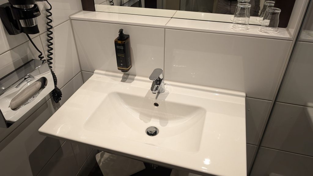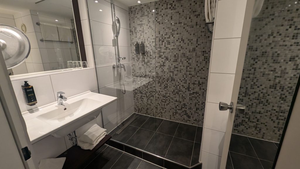 Das Badezimmer war funktional und modern eingerichtet mit einer geräumigen Dusche. Für Sauberkeit wurde sehr gut gesorgt. Duschgel und Shampoo waren vorhanden, aber nichts Herausragendes.