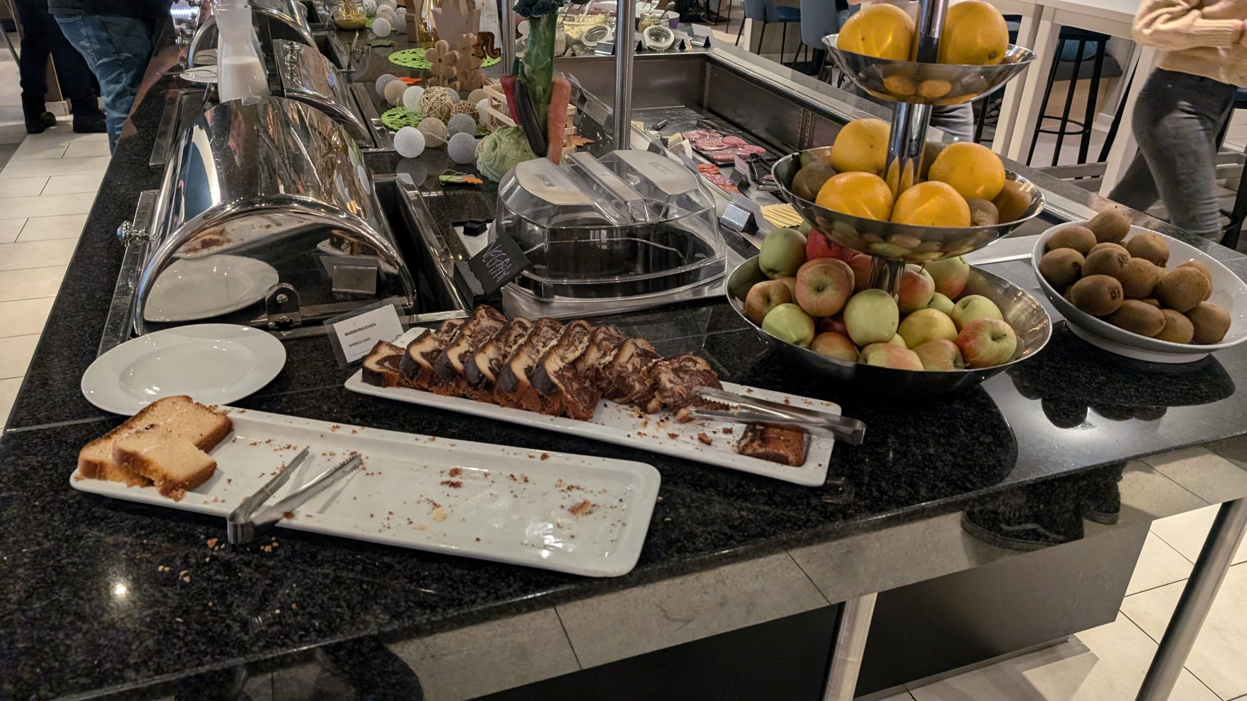 Das Frühstück im Mercure Hotel Duisburg City war insgesamt in Ordnung und bot eine gute Auswahl. Alle Speisen waren vollständig beschriftet. Gänzlich gefehlt hat es allerdings an frischen Zubereitungen wie Eierspeisen – es gab nur gekochte Eier und Rührei. Der Service war schnell und effizient – Tische wurden zügig abgeräumt und das Buffet regelmäßig aufgefüllt. Die Kaffeemaschine machte schnell Kaffee, der aber kein Highlight war. Ein großer Minuspunkt war jedoch der Bacon. Sehr trocken und krümelig – besser wäre es gewesen, diesen gar nicht anzubieten.